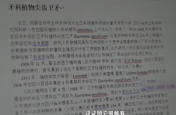 这个音书很快在植物学界传开,不少沟通过尖齿卫矛的巨匠王人又惊又喜,没思到销亡百年的物种果然确切还存在。