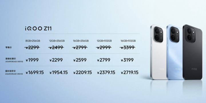 此次vivo发布的新机即是包摄于子品牌iQOO的Z11系列手机,包括iQOO Z11和iQOO Z11x,值得一提的是上一代iQOO Z10并莫得在国内市集登场,是以不好与新机对比价钱,但上一代iQOO Z10x有顺利登场,8GB+256GB版块售价是1199元,而新款的iQOO Z11x的8GB+256GB版块订价高达1699元,从这少许上其实也能看出元器件的加价,导致新机的价钱果真贵了不少。