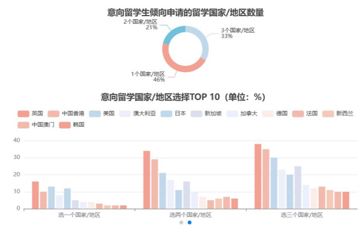 更值得注意的是,诠释指出,尽管锁定单一国度或地区的学生仍占主流,但这一比例仍是唯有46%;与此同期,进步半数意向留学生运行同期肯求2-3个国度或地区的高校,英国、中国香港、好意思国成为热点联申搭配。