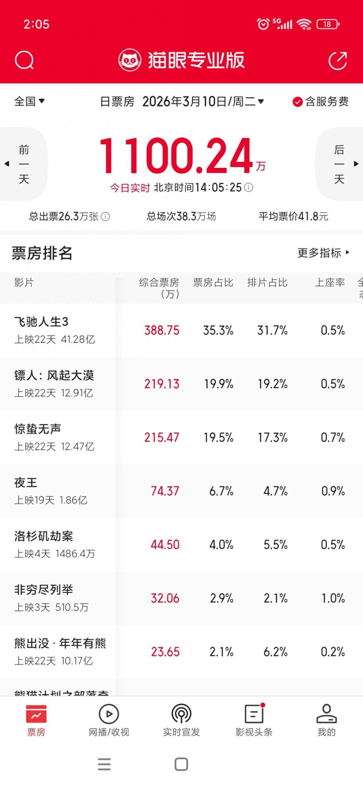 本日及时票房