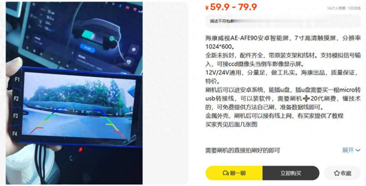 二手鱼里刷到个格外物,海康威视的安卓智能屏,卖家标价59.9元起。你没看错,一包烟钱就能搞到一块海康的7寸高清触摸屏,况兼它还能刷机,刷机后造成安卓系统,还能插U盘。
