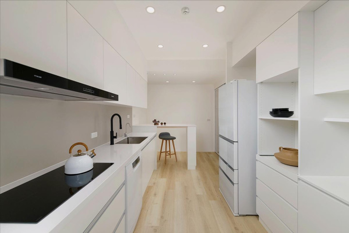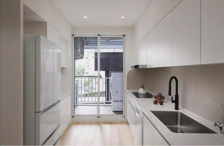 厨房是扩容赢家,改良后大了一圈,全白 + 无主灯,广宽又亮堂,再也毋庸挤来挤去。连珍重阳阳台,玻璃门隔油烟不挡光,曝晒作念饭两不踯躅。满墙橱柜收纳拉满,还定制简便吧台,配高脚椅,早上边吃早餐边看情景,幸福感爆棚!