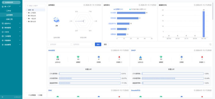 系统通过告警与金钱的自动关联,可快速定位故障对象,并攀附尺度化工单经过竣事问题的闭环处理,破解了以往告警无法快速关联金钱、问题处理过程不能回顾、工单与内容斥地脱节等痛点,为后续擢升运维效果、范例运维经过奠定基础。同期,长入的责任进口为运维料理提供了了的全局视角,料理东谈主员可及时掌执告警态势、金钱动手状况及工单处理进程,为运维决策提供可靠复旧。 02从斥地到业务,爱游戏体育官网长入业务保险体系 决策搭建长入的业务展示界面,可直不雅呈现各业务系统的健康状况,包括业务可用性、告警影响程度及动手风险品级,匡助运维东谈主员快速识别对造就、料理责任影响较大的重要业务出奇。同期,系统对业务所花消的狡计、存储、网罗等底层资源进行长入汇总与展示,竣职业务系统与底层资源的了了映射,透澈治理传统运维“只见斥地、不见业务”的行业痛点。