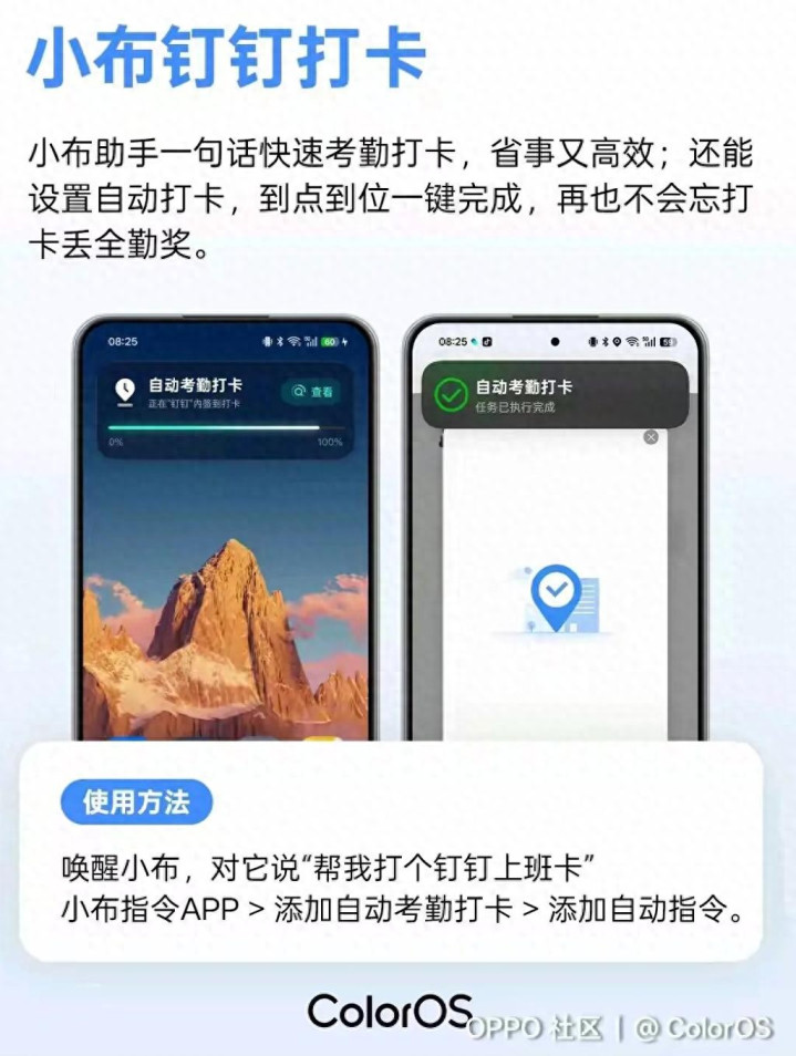 手机管家应用禁锢功能展示 :泄露禁锢高风险应用的领导界面及讲明 相同的逻辑也体现时应用禁锢上。往时不留心下载了盗窟APP,要等手机卡顿、弹窗泛滥后才后知后觉,现时系统级应用禁锢径直把风险掐灭在萌芽景色。惟有识别到高风险应用,系统会强制弹出无法跳过的禁锢领导,还能一键卸载,把“过后计帐”形成了“预先阻断”。 二、把重迭操作自动化,帮你保住全勤奖和专注力 许多东谈主每天王人会被多样重迭操作虚耗元气心灵:上班要手动打卡、导航要复制粘贴地址、查课表要翻相册……这些事单独看王人不复杂,但积存起来等于宏大的时辰虚耗。ColorOS 16.0.5的想路很径直:把能自动化的操作全部交给系统。 比如小布自动钉钉打卡,惟有在小布指示里竖立好时辰和地点边界,手契机在你插足公司区域后自动静默完成打卡,再也无谓昆玉无措找APP,以至无谓掏脱手机。从用户主动执行,到系统自动完成,幸运彩app下载这一步径直受束了“打卡总忘”的职场痛点,帮你把全勤奖紧紧持在手里。